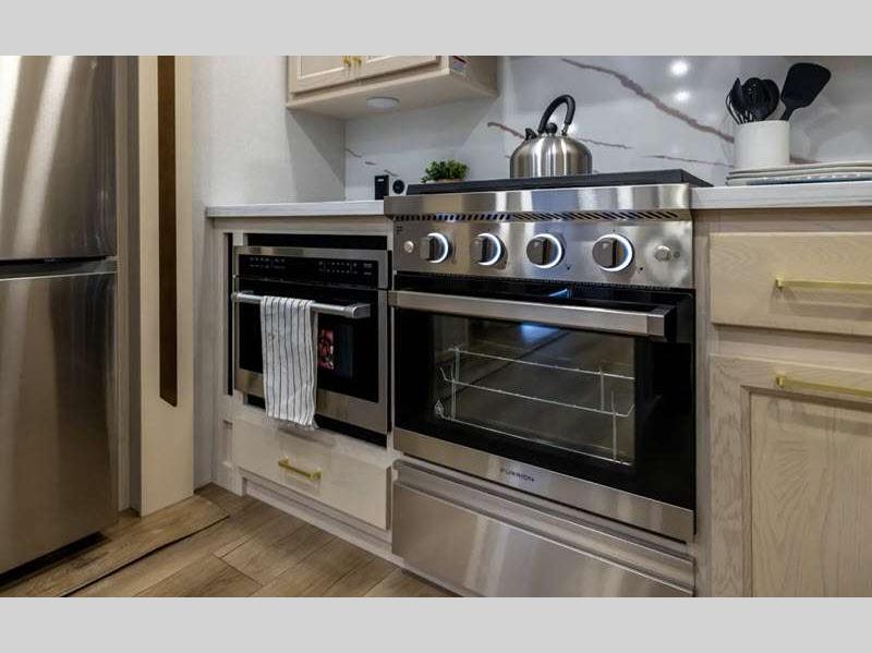 Sleeps 6 Slides 5 Length 41 ft 5 in Ext Width 8 ft 5 in Ext Height 13 ft 5 in Exterior Color Opt. Full Body Paint; Onyx, Sapphire, Opal Hitch Weight 2685 lbs GVWR 16685 lbs Dry Weight 14694 lbs Cargo Capacity 1991 lbs Fresh Water Capacity 75 gals Grey Water Capacity 82 gals Black Water Capacity 41 gals Available Beds King Refrigerator Type 110V Refrigerator Size 20 cu ft Cooktop Burners 3 Shower Size 48" x 30" Number of Awnings 2 Water Heater Type Suburban Tankless TV Info LR 50" Smart TV, BR 32" Smart TV Awning Info 15' and 15' w/ LED Night Lighting Axle Count 2 Washer/Dryer Available Yes Shower Type Shower w/Seat Solar Wattage 200 watts Similar Floorplans