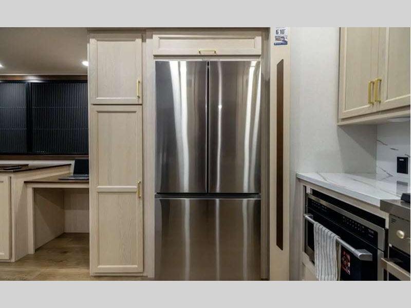 Sleeps 6 Slides 4 Length 43 ft 5 in Ext Width 8 ft 5 in Ext Height 13 ft 3 in Exterior Color Opt. Full Body Paint; Onyx, Sapphire, Opal Hitch Weight 2490 lbs GVWR 18000 lbs Dry Weight 15429 lbs Cargo Capacity 2571 lbs Fresh Water Capacity 75 gals Grey Water Capacity 82 gals Black Water Capacity 82 gals Available Beds King, Murphy Refrigerator Type 110V Refrigerator Size 20 cu ft Cooktop Burners 3 Shower Size 48" x 30" Number of Awnings 2 Water Heater Type Suburban Tankless TV Info LR 50" Smart TV, BR 32" Smart TV Awning Info With LED Night Lighting Axle Count 2 Washer/Dryer Available Yes Shower Type Shower w/Seat Solar Wattage 200 watts Similar Floorplans