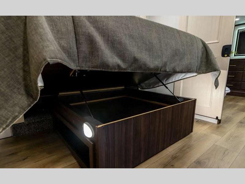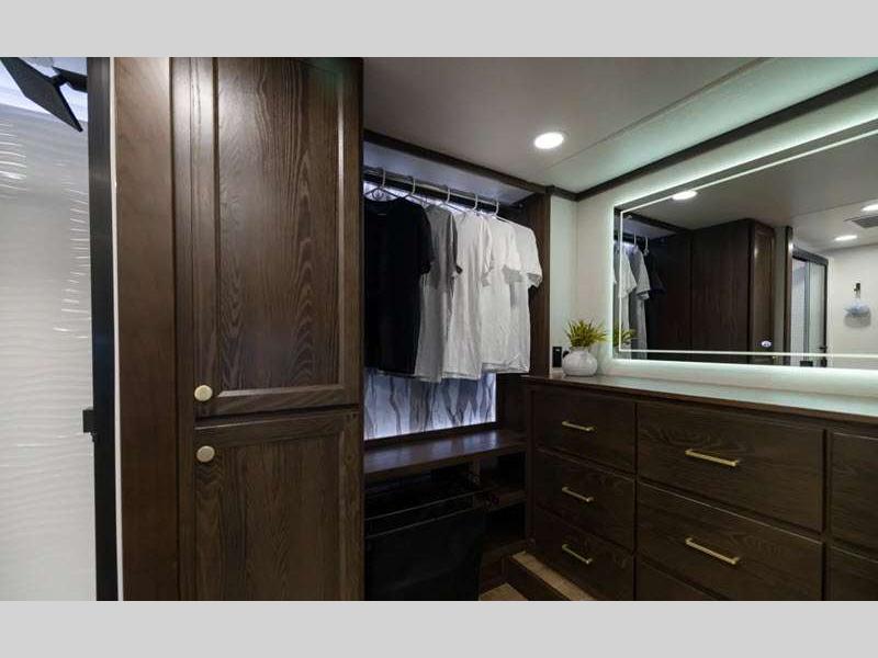 The 101" wide body frame will provide you with more space to stretch out and relax, and the "True" gelcoat exterior is the best of the best in exteriors! Each model also includes Road Warrior suspension for better handling, and the Gen 3 hydraulic leveling system will have you set up in no-time. Inside, you'll enjoy vinyl floor covering in the kitchen and living area, easy to clean, 12V motion lighting in the closet in the bedroom, plus many more comforts.