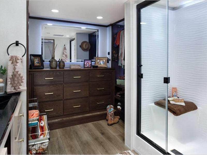Forest River Cedar Creek fifth wheel 383FB highlights: Front Bathroom Swivel ... more about Cedar Creek 383FB
