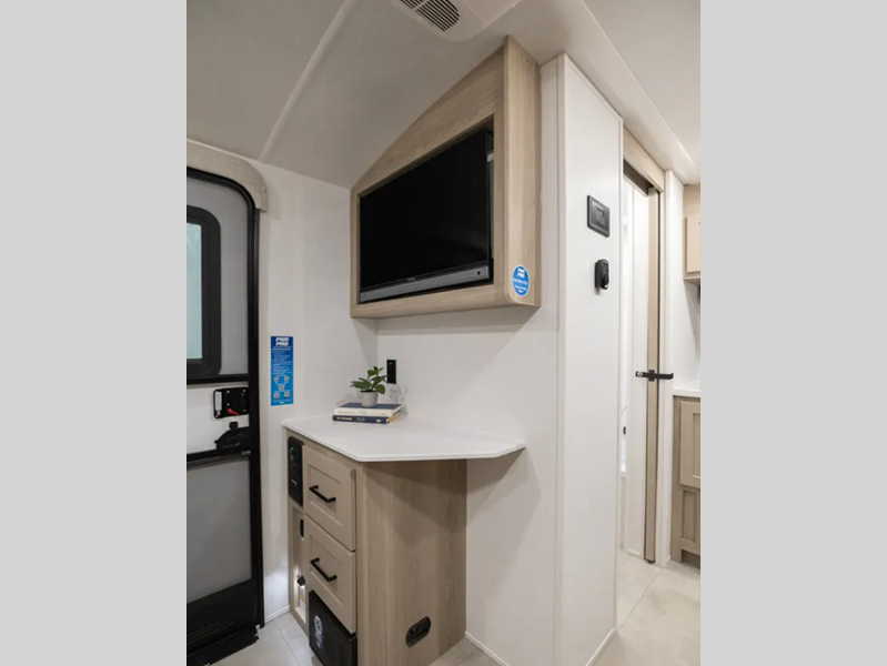 The complete composite wall construction and frameless widows provide a durable and sleek travel trailer you are sure to love. Each model features bigger nitrogen-filled tires and standard solar power that will allow you to go off-grid when the adventure calls for it. A refrigerator also comes standard, along with back-up camera prep, laminated roof, and more at-home comforts. And if you want to go off-grid, optional sunset seeker package is available on select models!