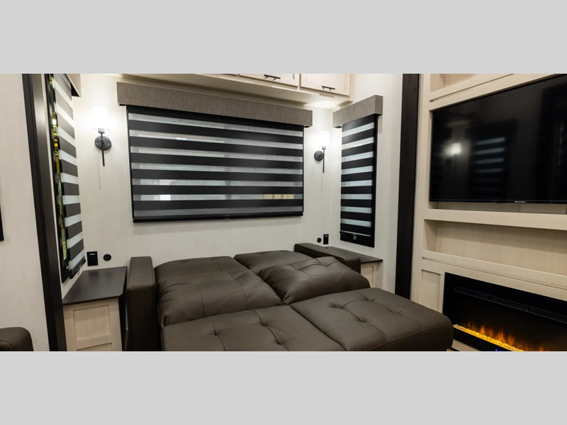 Sleeps 6 Slides 5 Length 42 ft 4 in Ext Width 8 ft Ext Height 13 ft 5 in Hitch Weight 2515 lbs Dry Weight 12503 lbs Cargo Capacity 2800 lbs Fresh Water Capacity 49 gals Grey Water Capacity 68 gals Black Water Capacity 68 gals Available Beds Camper King Refrigerator Type Residential Size Number of Awnings 2 Water Heater Type Tankless AC BTU 30000 btu TV Info LR Residential TV Awning Info 14' Adjustable Power with LED Lighting Axle Count 2 Washer/Dryer Available Yes Shower Type Shower w/Seat Electrical Service 50 amp Similar Floorplans