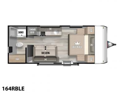 Sleeps 2 Length 20 ft Ext Width 7 ft 6 in Ext Height 10 ft Hitch Weight 380 lbs Dry Weight 2819 lbs Cargo Capacity 1061 lbs Fresh Water Capacity 43 gals Grey Water Capacity 30 gals Black Water Capacity 30 gals Available Beds Queen Cooktop Burners 2 Shower Size 36" x 24" Number of Awnings 1 Water Heater Capacity 6 gal Water Heater Type Gas DSI AC BTU 13500 btu Awning Info 8' 12V Power Axle Count 1 Shower Type Standard Electrical Service 30 amp Similar Travel Trailer Floorplans
